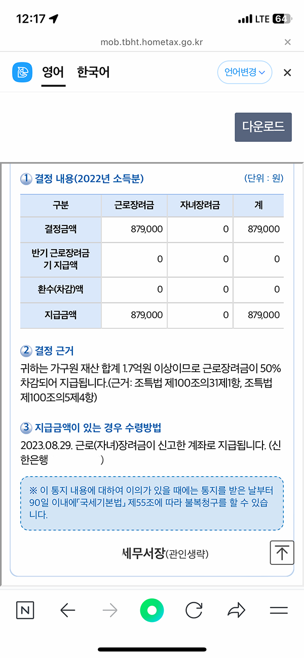 알고 보니 근로장려금이래... 생각도 못했는데....?